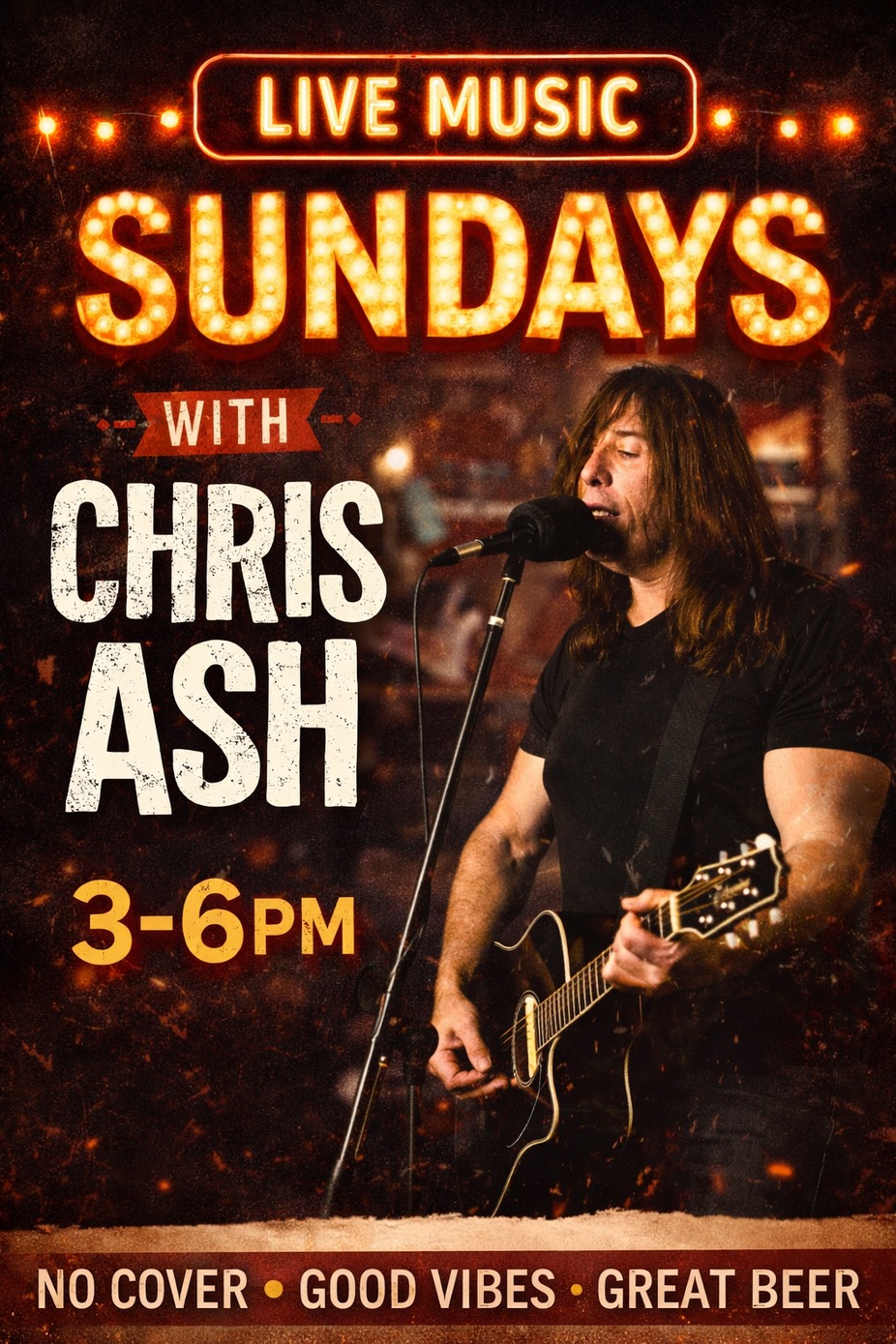 Wind down your weekend the right way with Chris Ash, bringing soulful vocals, acoustic favorites, and feel-good tunes to set the perfect Sunday mood.