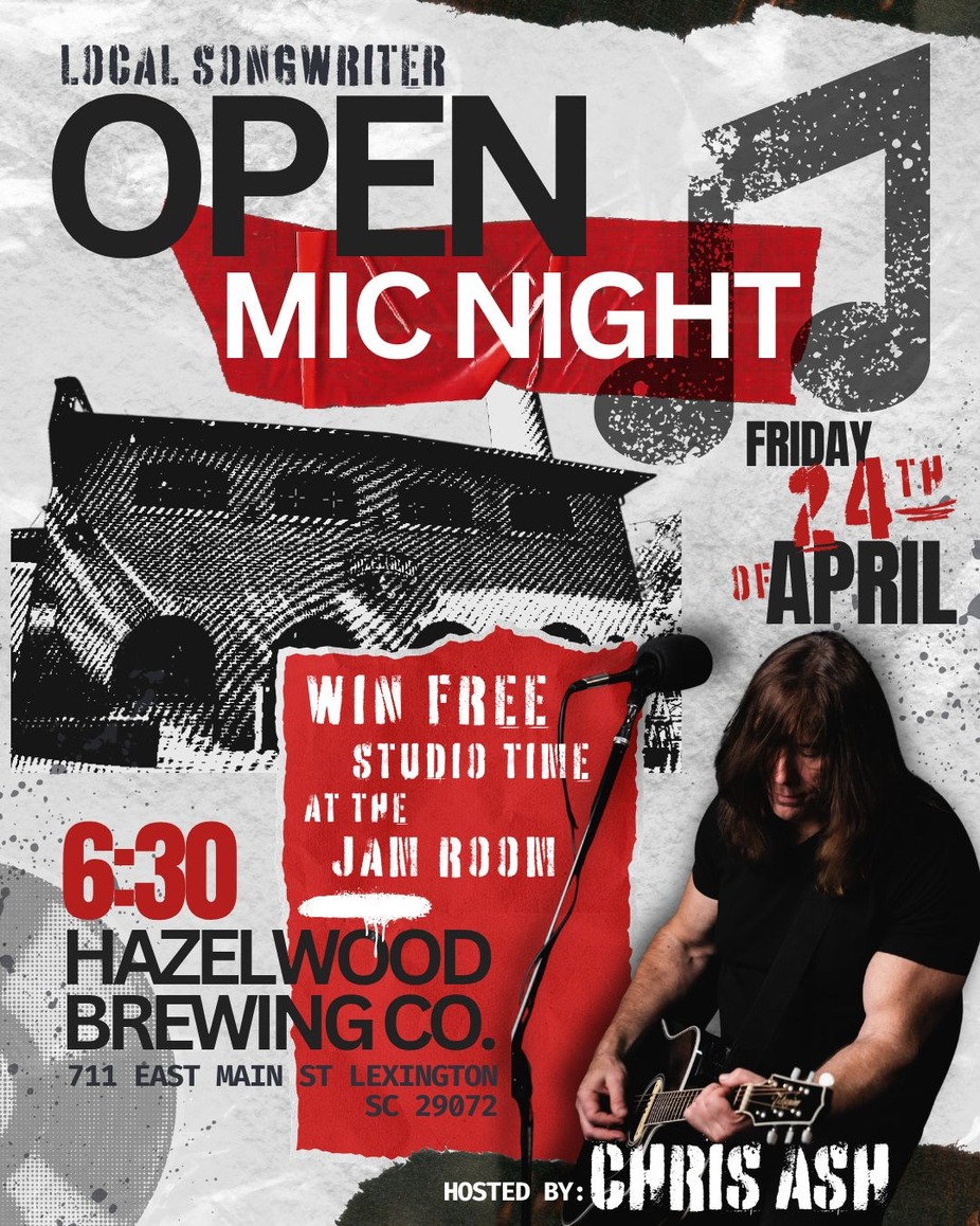 Come out and join Chris Ash as he hosts The Local Songwriters Open Mic Night at Hazelwood Brewing tonight, Friday April 24th at 6:30 PM at Hazelwood Brewing. All Participating Songwriters will be entered into a Drawing with The Winner receiving a Free Two Hour Recording Session at The Jam Room Recording Studio! It's not a contest-each Songwriter has an equal chance to win. We want to hear your songs!