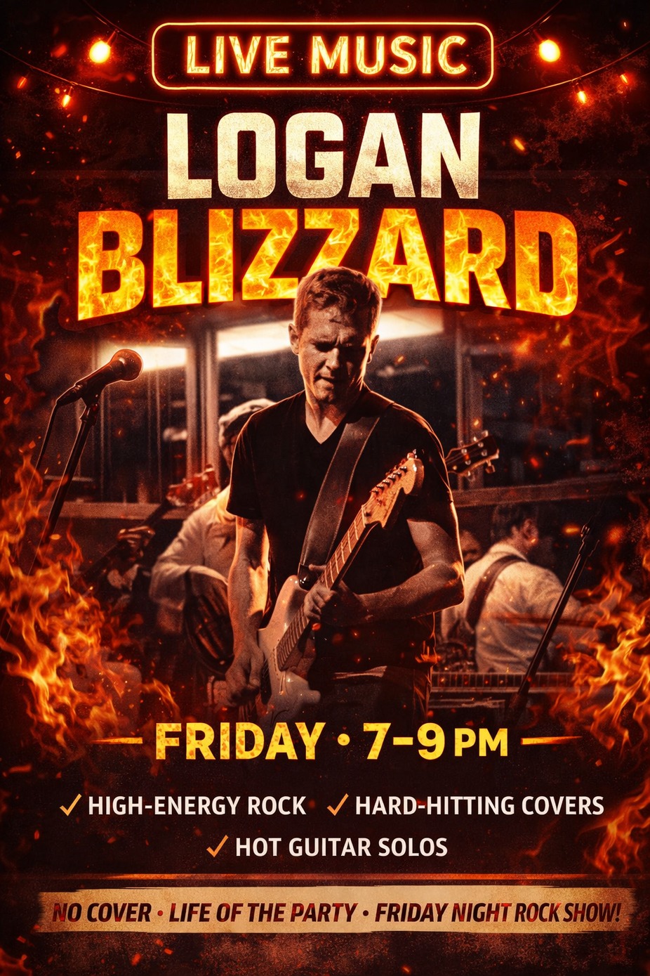 Get ready for a full-throttle live set as Logan Blizzard hits the stage bringing big energy, killer guitar work, and a setlist built to keep the crowd moving all night long.
