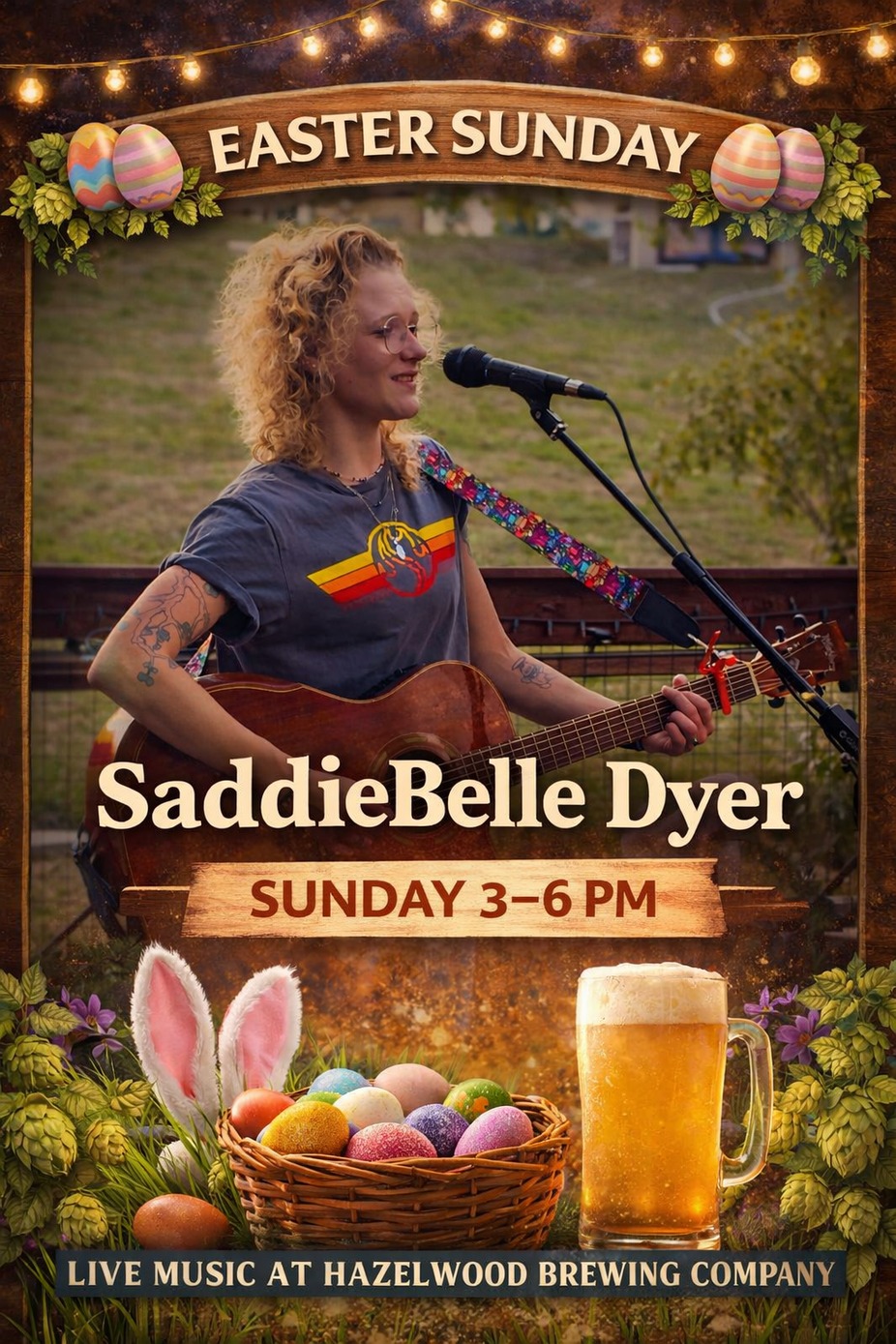 Celebrate Easter the Hazelwood way with an afternoon of live music, springtime vibes, and cold beer in hand! SaddieBelle Dyer brings a fresh, soulful acoustic sound that’s equal parts heartfelt and uplifting—perfect for a laid-back Sunday with friends and family.